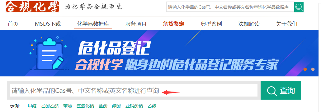 查询方式:在检索框中输入化学品的中文名称、英文名称以及CAS号点击检索即可。