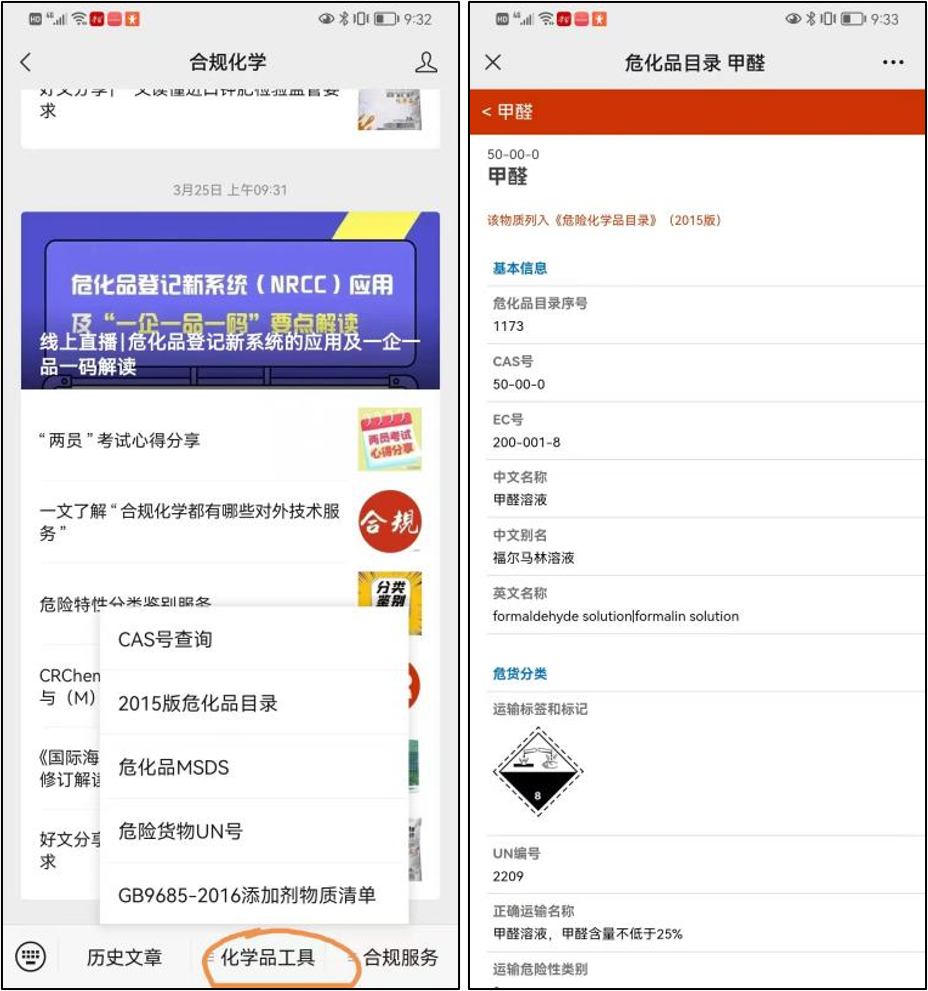 为了方便大家对《目录》中危险货物的识别,小编在此分享合规化学精心制作的《目录》在线查询工具,具体使用方法如下: