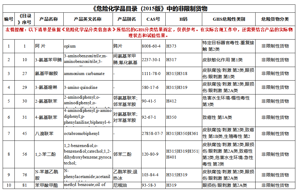 友情提醒:在利用《危险化学品分类信息表》进行危险货物判断时,要注意以下几个注意事项: